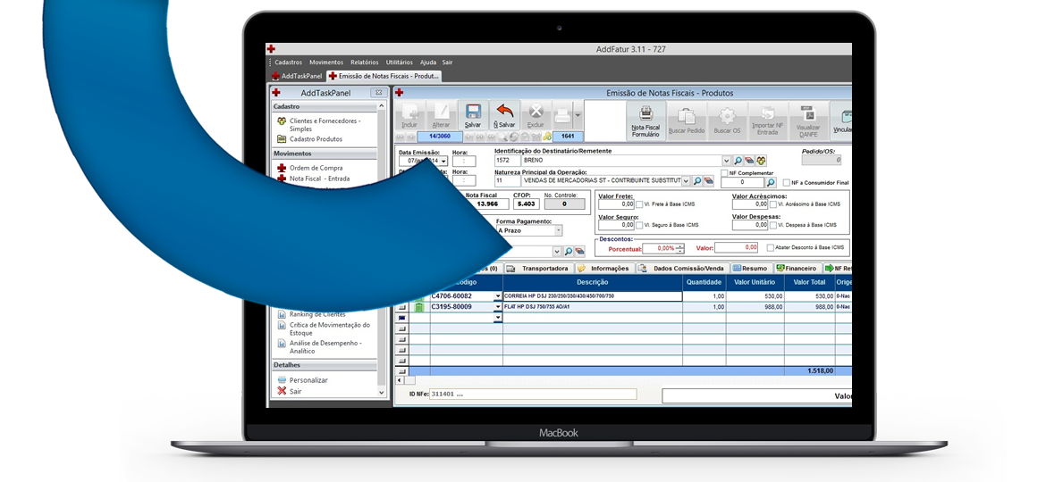 Relatórios gerenciais e flexibilidade em formatações de leiautes, tanto para relatórios quanto para pedidos e notas fiscais, fazem do AddFatur uma poderosa ferramenta de gestão para a área comercial.
